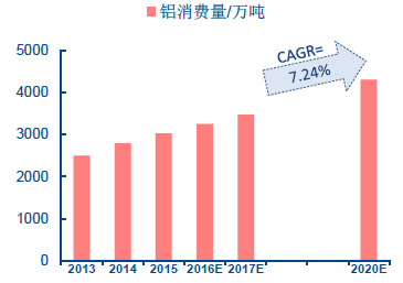 2013-2020年全球鋁消費(fèi)量預(yù)測(cè)